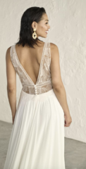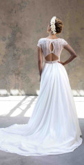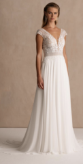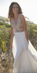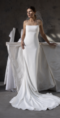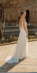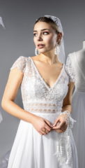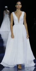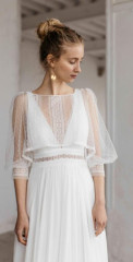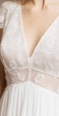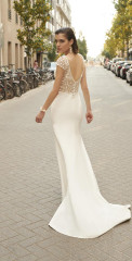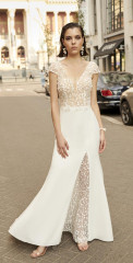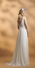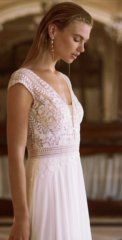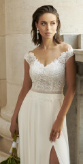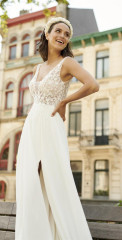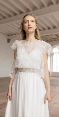 Die Brautkleider dieses französischen Designers sind mit französischer Spitze verfeinert, angenehm zu tragen und zeichnen sich durch einen schlichten, modernen Stil aus. Dieses Konzept wird auch durch vielfältige Kombinationen von schlichten Kleidern mit feinen unterschiedlichen Spitzenboleros umgesetzt.