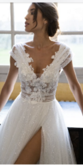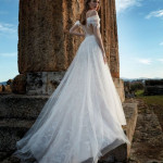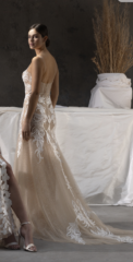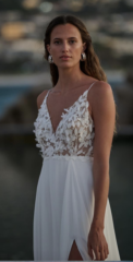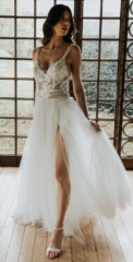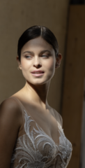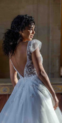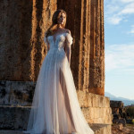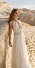Divine ist bekannt für sein romantisches, feminines Design. Durch zarte Spitze, weiche, schwebende Tüllröcke und wunderschöne Applikationen mit modernen Trends erweckt das Divine Atelier seine Kleider zum Leben. Der malerische Spitzenmix, die Couture-Details und die fließende Überlagerung mit Seide verleihen der Kollektion den Touch eines böhmischen, aristokratischen Stils.