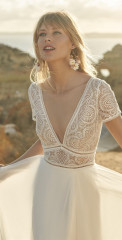 Die Brautkleider des belgischen Designers Rembo Styling zeichnen sich durch romantisches Design, leichte Materialien und viele Details aus und werden gerne zu Hochzeiten im Freien getragen.