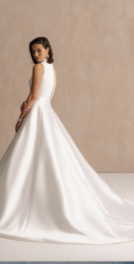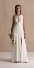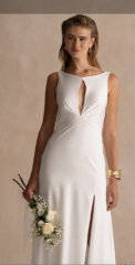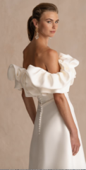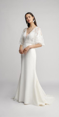 Schmeichelnde Silhouetten mit weitem Ausschnitt und rafiniertem Saum passen nicht nur zu schlanken Figuren, sondern auch zu Bräuten mit weiblichen Kurven. Passform ist für Freda Bennet extrem wichtig, deshalb wurde jedes Kleid so entworfen, dass es eine beeindruckende Struktur aufweist, die sicherstellt, dass sich jede Braut an ihrem Tag makellos anfühlt.