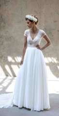 Die englische Designerin Olivia von House of Mooshki widmet sich dem Vintage Stil und entwirft schöne, elegante, zeitlose Brautkleider aus verschiedensten Materialien. Eingesetzt wird Satin, Seide, Chiffon, Organza und vieles mehr.